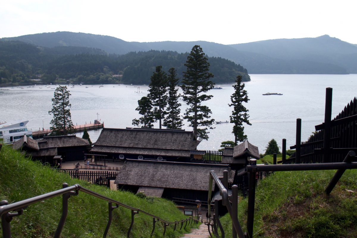 「関所からくり美術館」のすぐ近くに復元された「箱根関所」は観光名所となっていました。2007年春から全面公開された「箱根関所」が現在の場所に置かれたのは江戸時代の初期といわれているそうです。「遠見番所」へ続く階段は60段ほどあって息があがりましたが、芦ノ湖が一望できる絶景ポイントでした!
