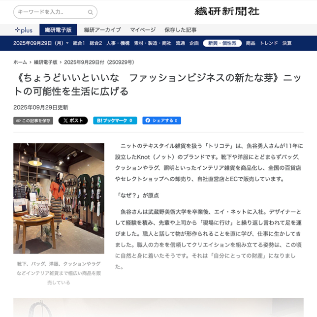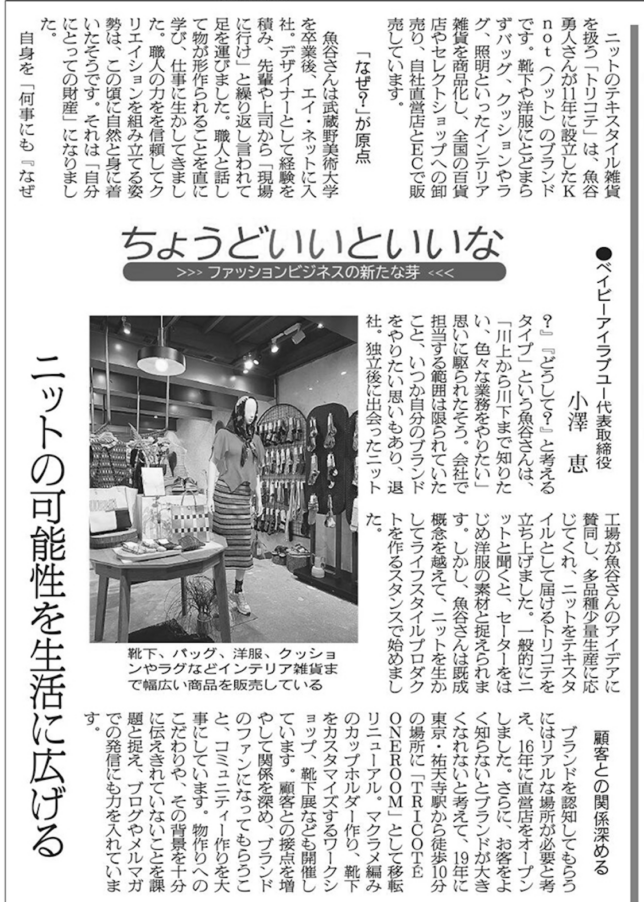 ファッションビジネス専門紙、繊研新聞「新興・個性派」コーナーに掲載。