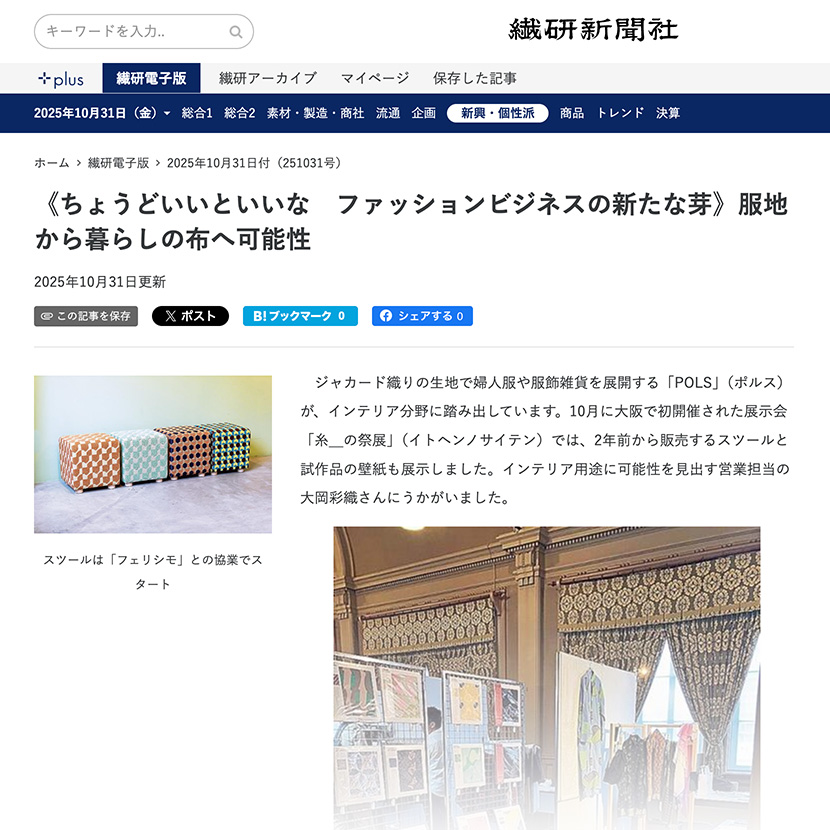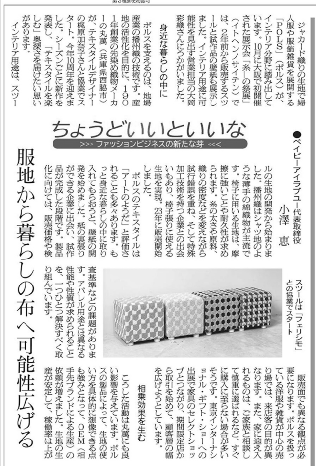 ファッションビジネス専門紙、繊研新聞「新興・個性派」コーナーに掲載。